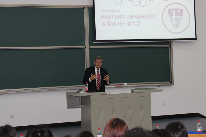 与美国宾夕法尼亚州东部大学在院东阶梯召开了合作MBA项目招生宣讲会。宾州东部大学校长大卫•布莱克校长、斯蒂文•沈博士,av在线
