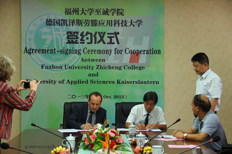 当天下午,av在线 在图书馆四楼会议室召开国凯泽斯劳滕应用科技大学代表团正式欢迎会,并举行了合作协议签订仪式。av在线 院长吴秋明教授、院党委副书记兼副院长雷石宝老师、副院长朱敏琛副教授、院长助理兼两办主任林行老师、物流管理系系主任朱东红副教授、机械工程系主任范扬波副教授、电气工程系主任郑崇苏副教授、土木工程系主任陈友杰副教授、培训部主任高建生副教授、外事办副主任严敏如老师等出席参加了仪式。