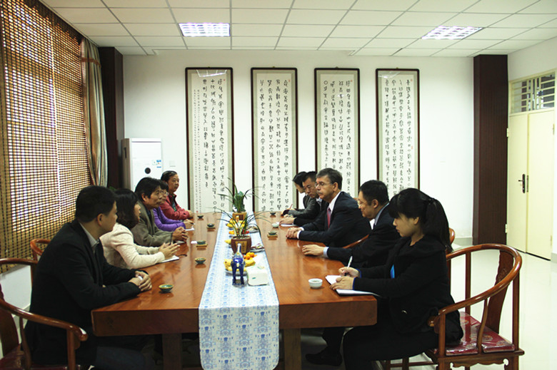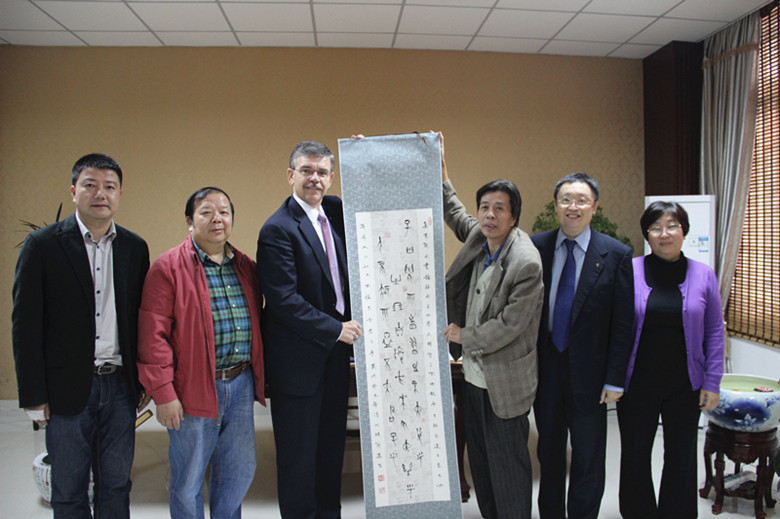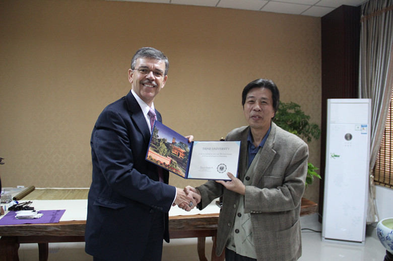 当天上午,双方在地矿楼一楼召开校际合作具体事宜洽谈会。洽谈会上,吴秋明院长首先介绍了av在线 的办学历史、学院规模、师资力量、办学质量水平及对外交流合作的基本情况。美国特莱恩大学厄尔•布鲁克斯校长、斯蒂文•沈副校长也分别介绍了特莱恩大学的办学各项基本情况。双方随后就合作办学项目、教师互访、学分互认、学生语言能力要求及语言学习问题、学费、住宿费、生活费等问题深入交换了意见,达成了初步共识,并约定尽快签署合作协议。