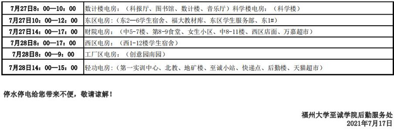 2021年暑期学院各楼宇停水停电计划公告