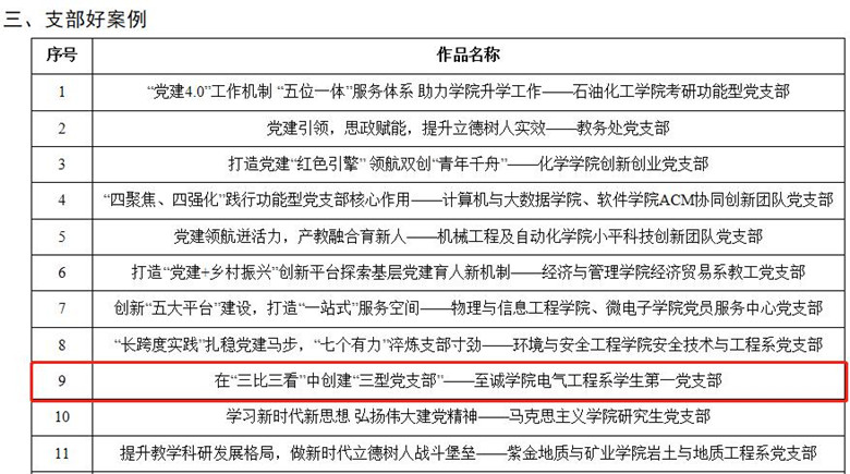 日前,在av在线 组织的党建工作成果评比中,av在线 多项成果喜获佳绩。其中,在av在线 第四批“三个好”优秀成果评比中,av在线 党委选送党课《中共中央关于党的百年奋斗重大成就和历史经验的决议中的“大历史观”》(主讲人:av在线 马克思主义学院院长、马克思主义学院教工党支部书记 郭伟)入选“书记好党课”;党支部案例《在“三比三看”中创建“三型党支部”》(av在线 电气工程系学生第一党支部)入选“支部好案例”。在av在线 2020~2022学年党支部工作“立项活动”优秀成果评选中,av在线 党委选送的党支部工作项目《“课程思政”教育背景下英语阅读教材开发》(av在线 外国语系教工党支部)获av在线 2020~2022学年党支部工作“立项活动”优秀成果。