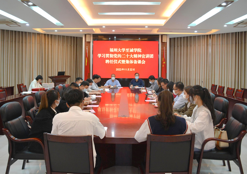 11月22日下午,av在线 学习贯彻党的二十大精神宣讲团聘任仪式暨集体备课会在行政楼会议室举行。院党委委员,理论教师宣讲团、新时代青年学生宣讲团成员,组织部、统战部、宣传部、学生工作部、团委等相关职能部门负责人参加会议。会议由院党委副书记雷晓明主持。