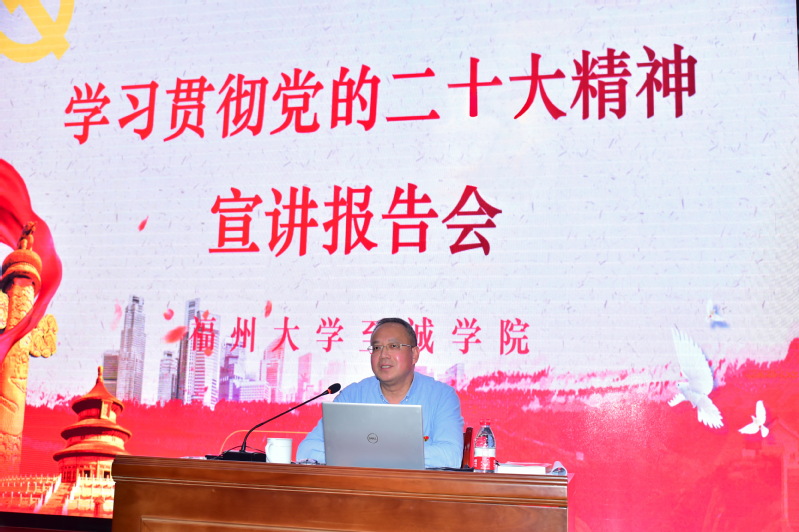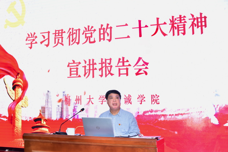 12月9日下午,由院党委主办、机关党总支承办的av在线 学习贯彻党的二十大精神宣讲报告会在科报厅举行。本次报告会由院党委常务副书记、院学习贯彻党的二十大精神理论教师宣讲团副团长何希耕,纪委书记翁德顺主讲。院党政领导、中层干部及机关党总支全体党员参加报告会。