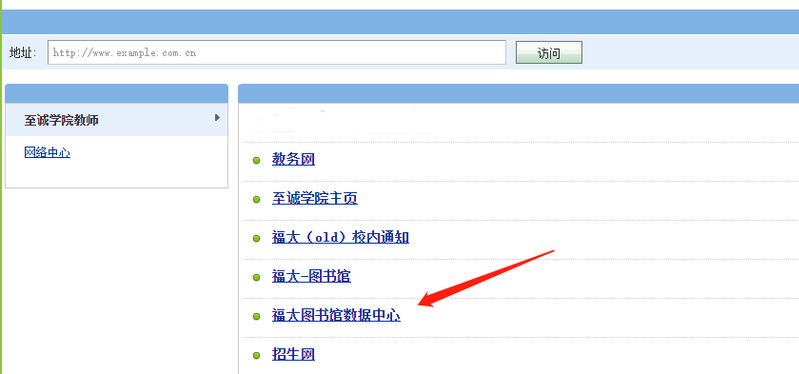 2、点击资源列表中的“福大图书馆数据中心”,即可访问图书馆相应资源。