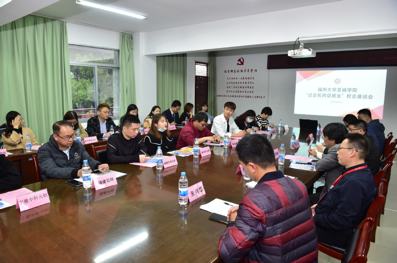 招聘会当天,在学生工作部(处)会议室还举行了校企座谈会,青拓集团有限公司、福州来玩互娱科技有限公司等十七家用人单位和产业园代表应邀参会。会上,院党委副书记雷晓明对各企业来校交流表示热烈欢迎,并介绍了校区概况、学院基本情况以及2023届毕业生相关情况。校企双方在学生实习和就业方面进行了深入交流。