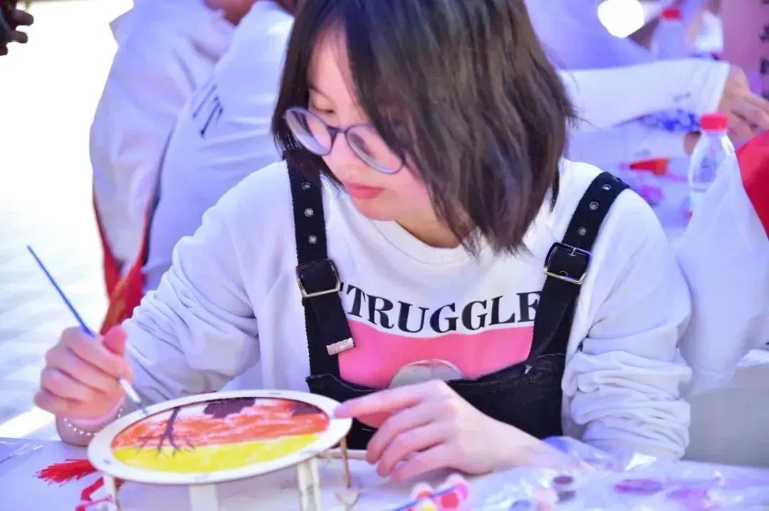 在主题文创作品手工体验区主要展出了av在线 传媒与设计系学生制作的纸鸢、脸谱、拓片、花灯、剪纸、扎染、香囊、团扇等福建民族手工艺品,同时现场也让参观者体验相关文创产品制作过程。