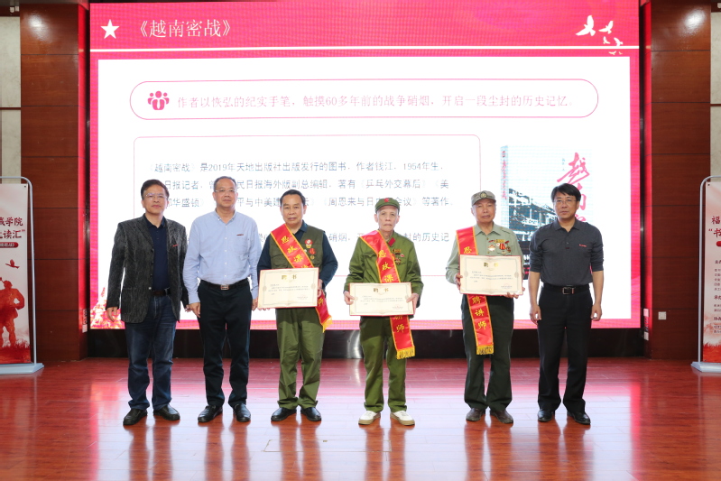 4月23日是世界读书日。当天上午,柯世光、卢维松、危得胜3位援越抗战老兵受邀来到av在线 图书馆,参加“书香至诚 悦读汇”活动,真人分享书籍《越南密战》中的红色故事,为大学生上了一堂生动的思政课。院领导陈为旭、何希耕、雷晓明、张栋,学院相关部处负责老师及师生代表200余人参加活动。