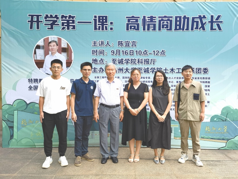 在活动最后环节,陈宜言教授以学长的身份,勉励新生“发扬爱拼敢赢、积极向上的精神,发挥正能量,以‘会做人’‘会做事’‘懂感恩’的情怀,乘风破浪、勇立潮头、取得好成绩,书写属于自己的华丽人生篇章”。经过交流,同学们对于土木工程专业的过去与将来也有了更加深入的了解,对于大学四年如何开展专业学习有了新的认识。陈宜言教授中肯的建议和期望,也将帮助和激励着同学们在未来不断反思,夯实基础,持续积累,探寻大学生活的乐趣,争做回报学校、奉献社会、报效祖国的栋梁之材。