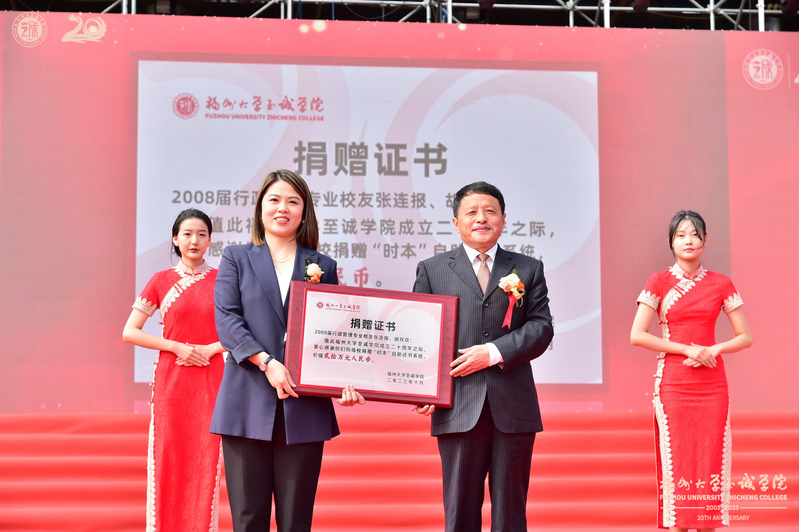 党委书记陈国龙、副书记张星代表学校为捐赠单位和校友代表颁发捐赠证书。