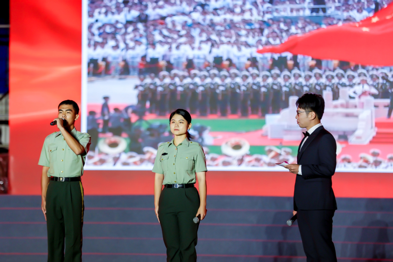 在第三篇章“筑梦”中,先是院退役大学生带来军事表演《我们曾经是军人》,赤忱爱国心深深触动现场每一位观众;随后是校友们唱响《光阴的故事》,重温至诚荣光;再是院舞蹈团和电气工程系舞动《未来》;最后,在指挥者潘超的带领下院合唱团和全体演员齐唱《青春》,带我们领悟“青春虽短暂,奋斗不停歇”。