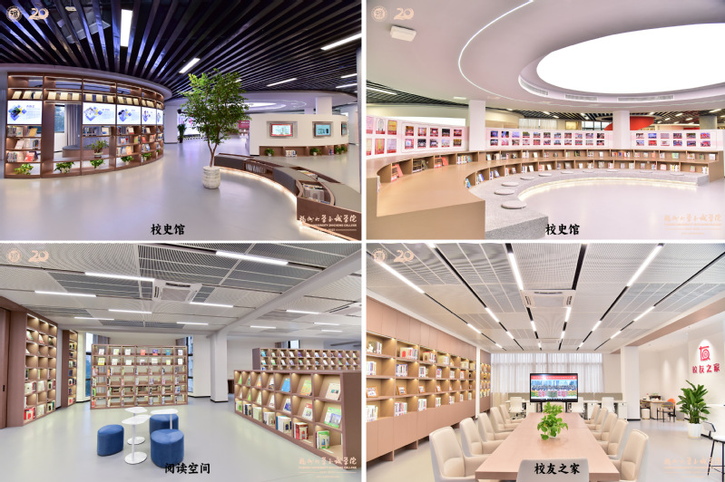 “校史馆、阅读空间、校友之家”三馆合一,位于怡山校区av在线 图书馆四楼,旨在打造“科技+创意”的知识交互融合中心,彰显校园文化底蕴、传承校园历史文化、展示学院办学成效,并为在校师生、校友提供一个知识融合、思想启迪、增进情感的多元交融共享空间。