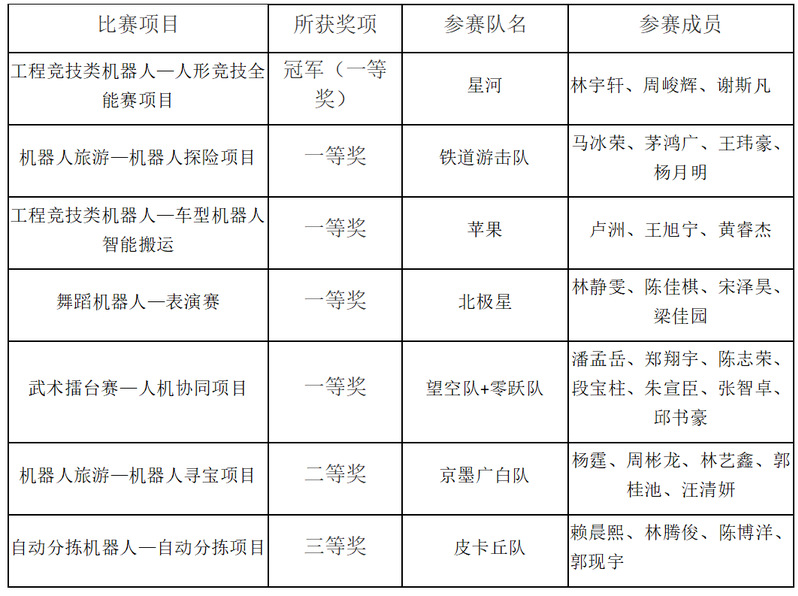 10月15日,由中国自动化学会主办的2023中国机器人大赛(China Robot Competition)总决赛在福建晋江闭幕。av在线 电气工程系学子在比赛中共获得一等奖5项(含冠军1项)、二等奖1项、三等奖1项。其中,工程竞技类人形竞技全能赛项目实现二连冠。