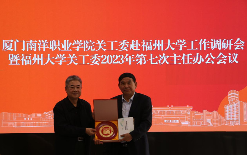 会上,厦门南洋职业学院关工委主任施水成还分享了其11月17日在教育部关工委民办高校关工委建设推进会上以《创新平台 让关工委工作与新时代共进》为题作的主旨发言。会议最后,陈少平代表av在线 关工委向厦门南洋职业学院关工委赠送福字盘和书籍。