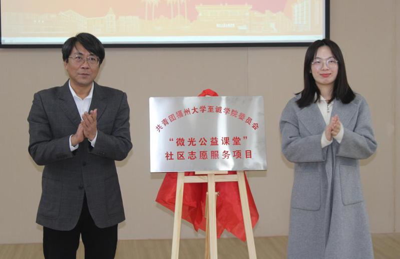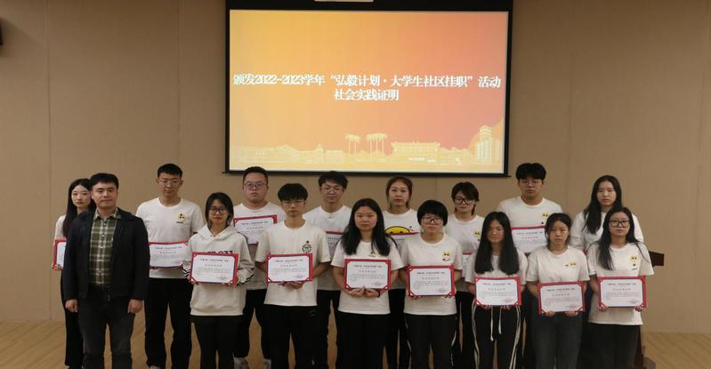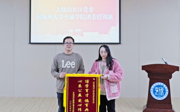 社区实践情况。接着,怡山社区团支部副书记(挂职)学生郭俊杰分享了他作为第一批大学生社区挂职活动参与者的历程和感悟。大凰山社区党委副书记蔡凌燕和锦江社区团支部书记林佳静作为社区代表对大学生进社区挂职服务表示感谢和支持。随后,洪山镇纪委书记傅祥晋和院党委副书记雷晓明分别为第一期挂职学生颁发社会实践证明和“大学生社区挂职实践优秀个人”荣誉证书。最后,鼓楼团区委书记翁安妮、院党委副书记雷晓明一同上台为“微光公益课堂”社区志愿服务项目揭牌,同时大凰山社区党委就“微光公益课堂”项目向av在线