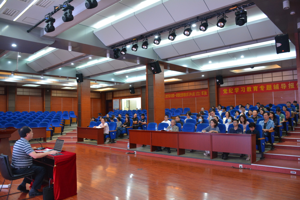 5月15日下午,av在线 党纪学习教育读书班第一讲暨院党委理论学习中心组(扩大)学习会在音乐厅举行。为深入学习贯彻习近平总书记关于党纪学习教育的重要讲话和重要指示精神,认真学习新修订的《中国共产党纪律处分条例》,加强党的纪律建设,推动全面从严治党向纵深发展,院纪委书记翁德顺作了题为《新修订<中国共产党纪律处分条例>解读》专题辅导报告。院党委常务副书记何希耕、机关党总支全体党员参加了报告会,报告会由机关党总支承办。