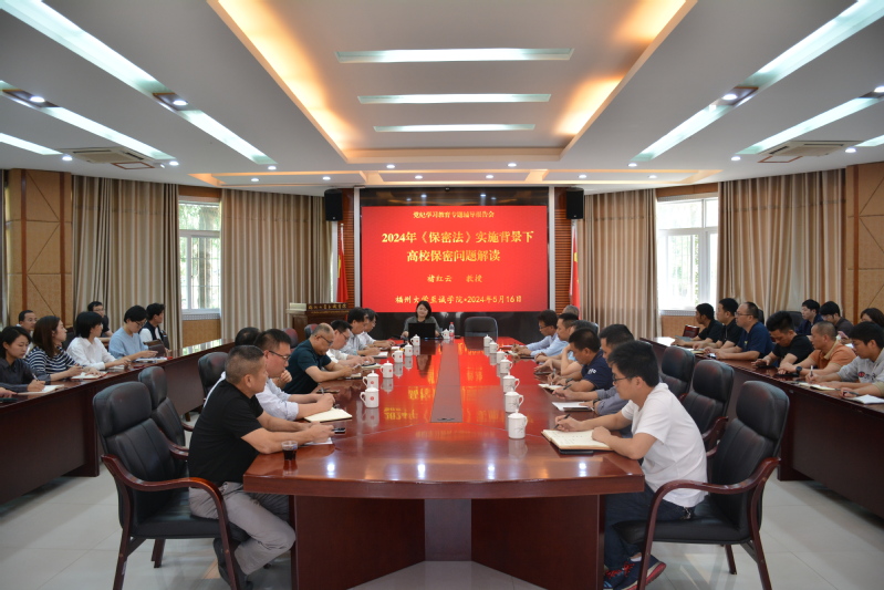 为深入开展党纪学习教育,切实提高学院党员干部守纪保密意识,做好学院保密工作,5月16日下午,av在线 举办党委理论学习中心组(扩大)学习会暨党纪学习教育专题辅导报告会。邀请福建警察学院侦查系副主任褚红云教授作题为“2024年<保密法>实施背景下高校保密问题解读”的辅导报告。学院领导、党委理论学习中心组成员,机关各部门中层干部以及教学单位负责人共计70人参加报告会,院党委副书记雷晓明主持报告会。