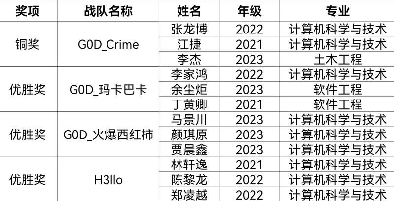 本次大赛吸引了来自全国各地的1000余支队伍3000余名选手报名参赛。参赛选手来自电信、移动、金融、工业、安全等行业赛道选手以及来自哈尔滨工业大学、电子科技大学、北京邮电大学、厦门大学、福建师范大学等院校赛道选手,每个赛道各100支队伍晋级线下赛,最终两个赛道各评出金奖3项,银奖5项,铜奖8项,优胜奖20项。