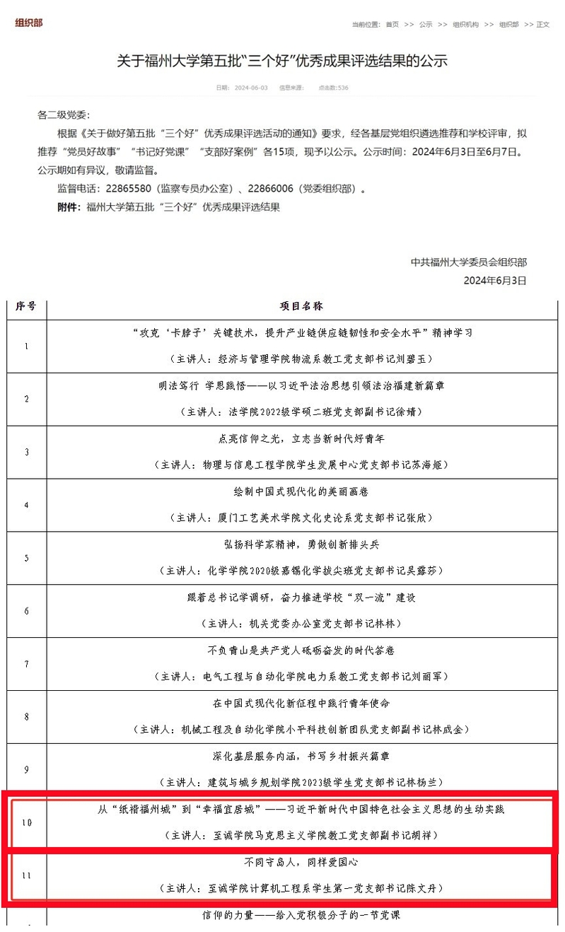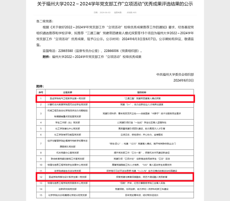 日前,av在线 党委公示《av在线 第五批“三个好”优秀成果评选结果》和《av在线 2022~2024学年党支部工作“立项活动”优秀成果评选结果》,av在线 有4项成果入选优秀成果,是历年来最好成绩。