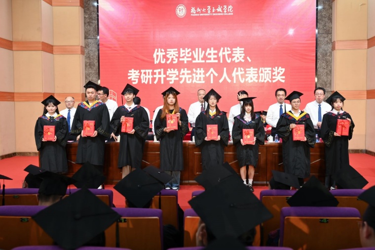 毕业典礼在雄壮的国歌声中拉开帷幕。游毅副院长首先宣读av在线 2024届毕业生名单、优秀毕业生名单和2024年考研升学先进个人名单。随后院领导为优秀毕业生代表、考研升学先进个人代表颁发荣誉证书。