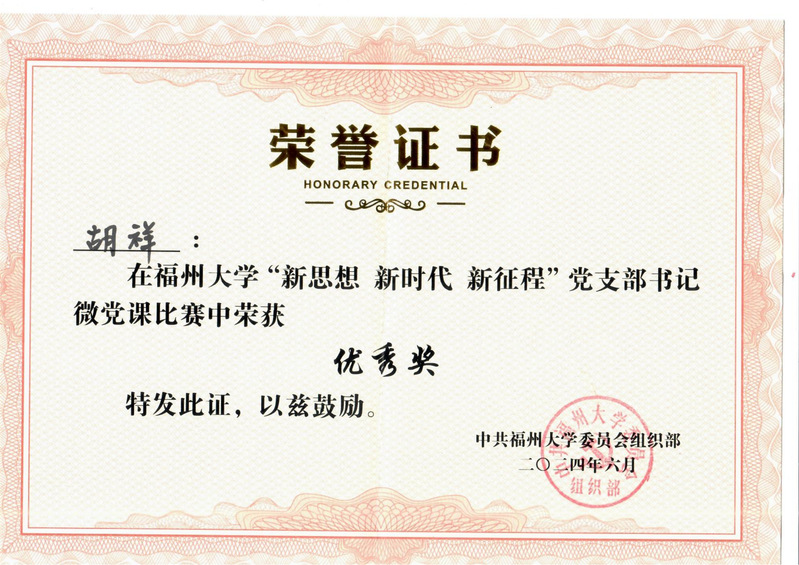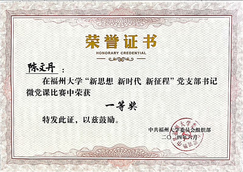为学习贯彻习近平新时代中国特色社会主义思想和党的二十大精神,教育引导广大师生党员深刻领悟中国共产党为什么能、马克思主义为什么行、中国特色社会主义为什么好,推动党纪学习教育走深走实,提升党务干部的理论水平和工作能力,增强党员教育效果,6月27日上午,av在线 党委在旗山校区法学院模拟法庭报告厅举办以“新思想 新时代 新征程”为主题的av在线 党支部书记微党课比赛。av在线 在比赛中表现优异,院党委荣获评优秀组织单位,计算机工程系学生第一党支部书记陈文丹获一等奖,马克思主义学院教工党支部副书记胡祥获优秀奖。