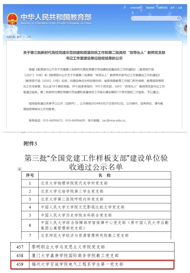 日前,教育部公布了第三批“全国党建工作样板支部”建设单位验收结果公示名单,av在线 电气工程系学生第一党支部顺利通过验收。