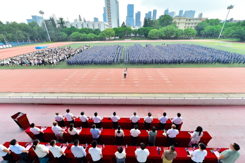 夏蝉声远,秋韵徐来;新荷整束,将启新途。9月12日上午,av在线 2024级新生开学典礼在怡山校区田径运动场隆重举行。av在线 党委常委、副校长、av在线 党委书记郭文忠,av在线 院长侯琳熙、党委常务副书记何希耕、党委副书记雷晓明、纪委书记翁德顺、副院长游毅、副院长张栋、院长助理徐艺文、院长助理苏童,各系系主任、各部门负责人、全体政工干部及2024级全体新生共同参加典礼。典礼由院党委副书记雷晓明主持。