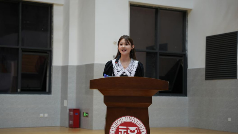 2024级英语专业的林舒怡同学作为新生代表在典礼上发言,她分享了对知识的憧憬、对未来的渴望,并从明确目标、笃行致远,博观约取、厚积薄发,明德修身、知行合一三个方面与同学们共勉,表示将更加注重在实践中学习,将知识内化于心,外化于行,不断提升综合素质。