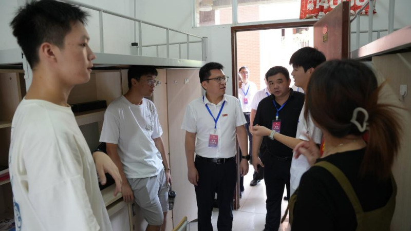 当天,av在线 党委常委、副校长、av在线 党委书记郭文忠,在学院领导的陪同下前往泉港校区迎新现场,深入新生报到点、绿色通道、新生宿舍及校内外迎新点检查指导学院迎新工作,看望新生及家长,慰问参与迎新的工作人员和志愿者。