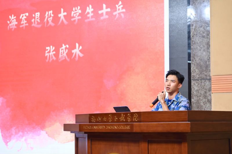 活动以“我与英雄同青春”为主题,特邀福州市革命英烈纪念园(福州市革命英烈事迹陈列馆)讲解员、退役军人陈喆源现场授课。陈喆源以马尾船政、八一七路、鸡角弄、市革命英烈事迹陈列馆等红色景点,串联讲述福州革命史,让全体师生更加深刻认识到福州丰富的革命历史和红色文化,传承革命记忆,坚守红色初心,感受革命先烈的艰苦斗争,领悟中国共产党以人民为中心的思想。
