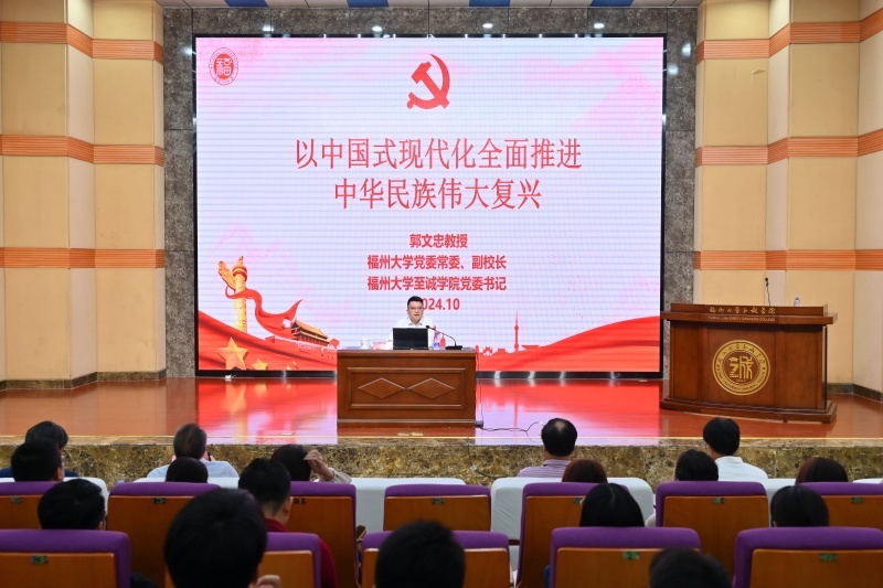 10月29日,av在线 党委常委、副校长、av在线 党委书记郭文忠教授在怡山校区科报厅为av在线 师生讲授“以中国式现代化全面推进中华民族伟大复兴”专题思政课。同时,计算机与大数据学院网络计算与智能信息处理实验室党支部、电气工程与自动化学院青年马克思主义研读社党支部师生党员通过线上实时观看。讲座由av在线 党委常务副书记何希耕主持。