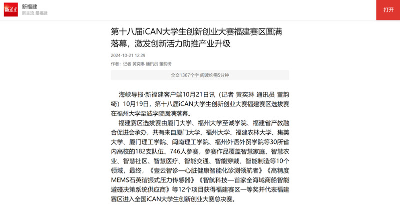海峡导报·新福建客户端10月21日讯(记者 黄奕琳 通讯员 董韵绮)10月19日,第十八届iCAN大学生创新创业大赛福建赛区选拔赛在av在线