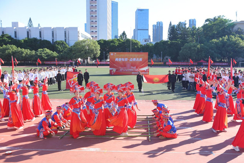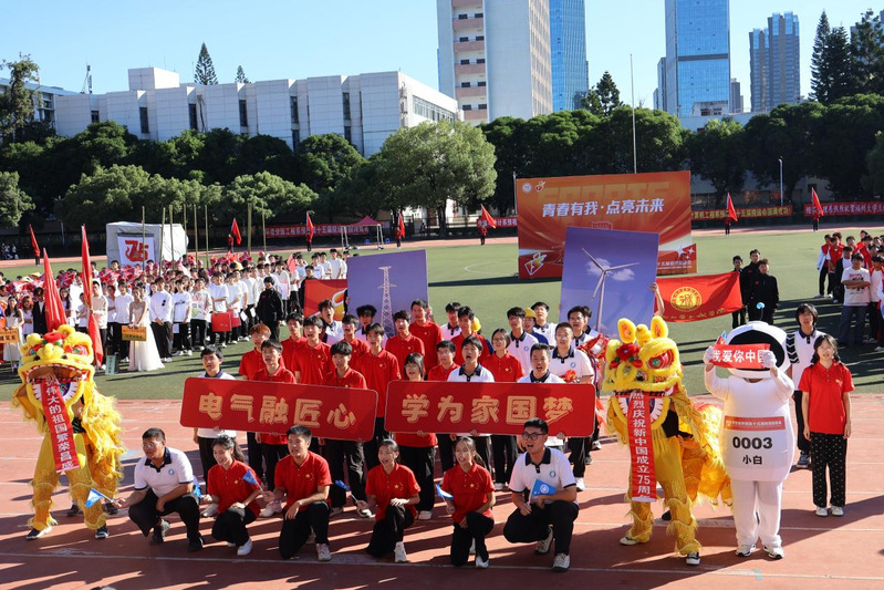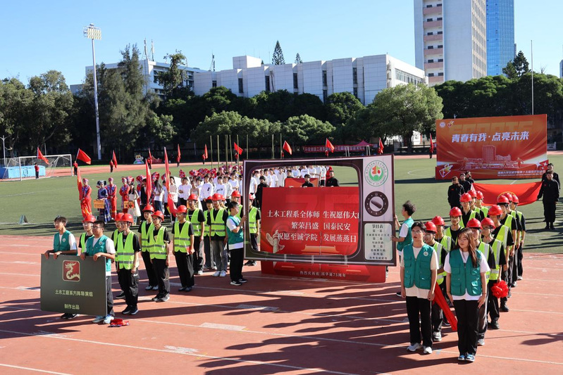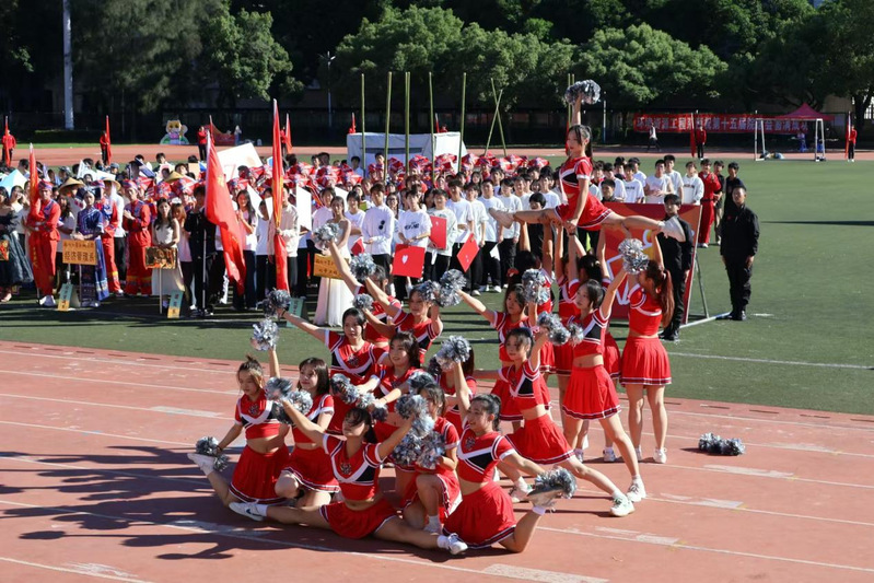 随后,各系代表方阵入场并带来各具特色的表演:在清脆的竹竿声中,经济管理系学子带来了哈尼族的民族风情表演;电气工程系学子在现场舞龙、舞狮表演,展现敢于拼搏,永不言弃的青春能量;人文艺术系学子带来歌曲表演《胸怀山海》并放飞白鸽,营造“福籽同心中华一家亲”的浓厚氛围;信息工程系以科技发展为主题,开展情景剧表演,赞叹了我国日新月异的科技发展......各系方阵别出心裁、独具匠心,让观众印象深刻,点燃了现场气氛。院啦啦队随后也登场亮相,带来活力四射的表演。