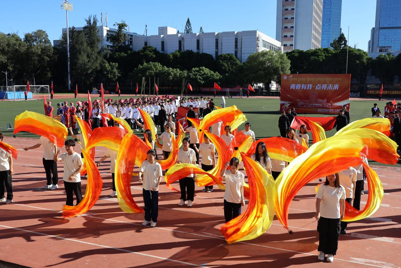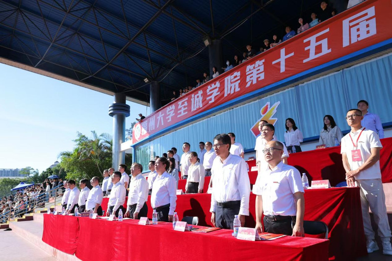 升国旗仪式后,林文麟党委副书记致开幕词。他总结了学院近年来在体育教育与竞技中所取得的成绩,强调要牢记习近平总书记的嘱托,积极响应建设体育强国的号召,通过运动会营造热烈、浓郁的体育锻炼氛围,打造具有丰富底蕴的校园体育文化。他希望师生们以热烈饱满的精神投入到体育事业的建设,积极参与体育健身活动,强健体魄、砥砺意志;秉承“更快、更高、更强、更团结”的奥林匹克精神,顽强拼搏,踔厉奋发,以更饱满的精神、更强烈的热情投入到学习生活中。