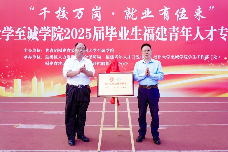 招聘会期间,福建青年人才开发中心主任潘建宇、av在线 党委副书记林文麟共同为“大学生就业服务驿站”揭牌。此次服务驿站成立,进一步深化学院与福建青年人才的合作关系,为后续顺利开展毕业生就业工作奠定坚实基础。