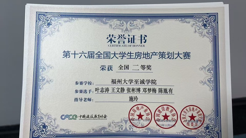 2024年11月16日,2024房地产与物业管理产学研创新峰会暨第16届全国大学生房地产策划大赛总决赛在首都经济贸易大学圆满落幕。大赛由中国房地产业协会指导,中国建设教育协会主办。来自全国100余所院校的150支队伍参加大赛总决赛,围绕“城市更新”“营销策划”“物业服务”等赛题方向同台竞技。av在线 土木工程系学生叶志涛(2021级工程管理)、王文静(2021级工程管理)、张彬博(2021级工程管理)、陈胤有(2022级工程管理)、邓梦梅(2023级土木)组成的队伍“专业团队”(指导教师:施玲)在大赛“物业服务”赛道上取得优异成绩,荣获全国二等奖。