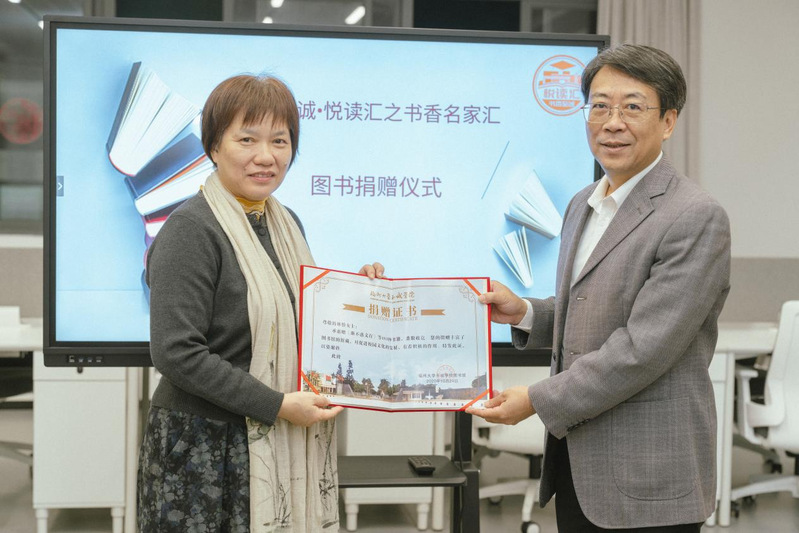 雷晓明副院长为林怡教授颁发图书捐赠证书