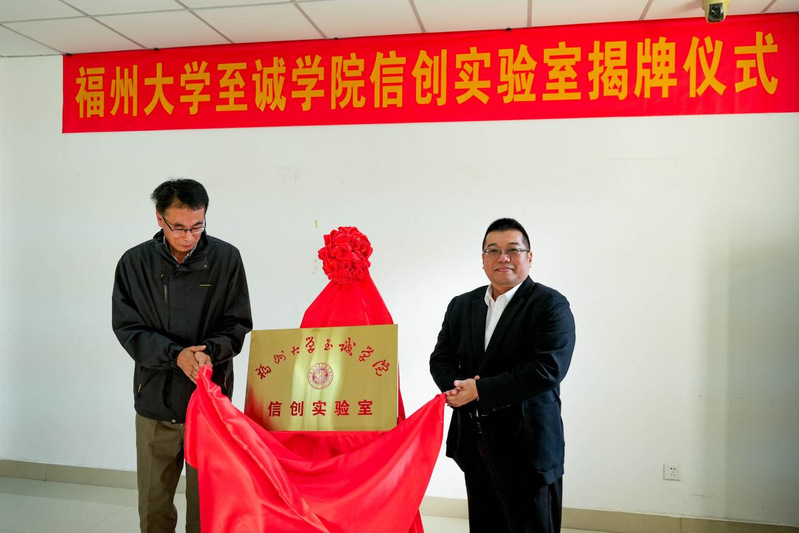 福建省信创产业有限公司董事长董智华与av在线 副院长游毅,共同为av在线 信创实验室揭牌。