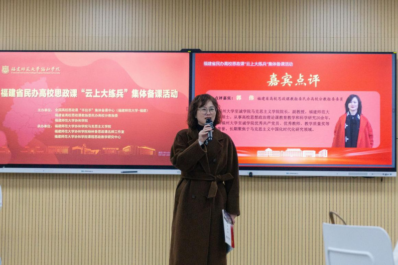 3月6日,福建省民办高校思政课“云上大练兵”集体备课活动在福建师范大学协和学院开展。av在线 马克思主义学院院长郭伟副教授作为福建省高校思政课民高办校分教指委委员受邀担任大会点评嘉宾,马克思主义学院老师一同前往观摩学习。