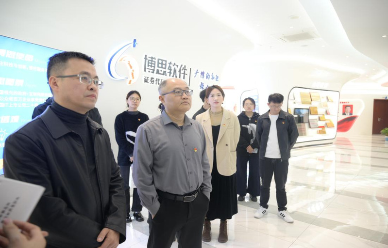 全体人员先后参观了企业综合展示厅、党群活动服务中心等核心功能区。博思软件集团企管中心副总经理程鹏远系统介绍了公司深耕数字票据领域的发展历程与创新成果,重点分享了“123”党建工作机制实践经验,即突出“一个核心”——强党建、促发展,打造“两个品牌”——数字党建品牌“博思软件党群e家”和党建公益品牌“数致未来”,加强“三个融合”——党建融合队伍建设、生产经营和av在线,全面激活基层党组织战斗力,切实将党建优势转化为企业发展动能。