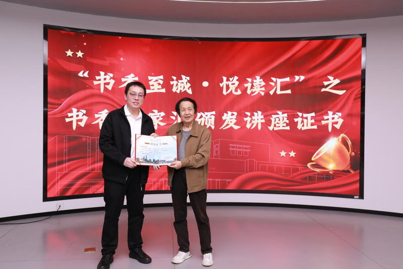 活动伊始,院长助理苏童为林焱教授颁发“书香名家汇”主讲嘉宾证书,拉开了讲座序幕。讲座中,林焱教授以生动的语言,剖析智能信息时代的阅读变革。他指出,海量信息如潮水般涌来,而中华优秀传统文化典籍,历经岁月沉淀,承载着人类文明的精神基因与智慧,持续滋养着人们的心灵。同时,林教授强调,AI技术为深度阅读的重塑带来了实践契机。在他的解读下,现场师生仿佛看到哪吒抗争命运、孙悟空降妖除魔等经典人物形象,正借助AI技术以全新姿态“苏醒”,成为智能时代的精神坐标,指引人们在数字化浪潮中校准方向。林教授还寄语青年学子,善用数字技术,传承和弘扬中华优秀传统文化。