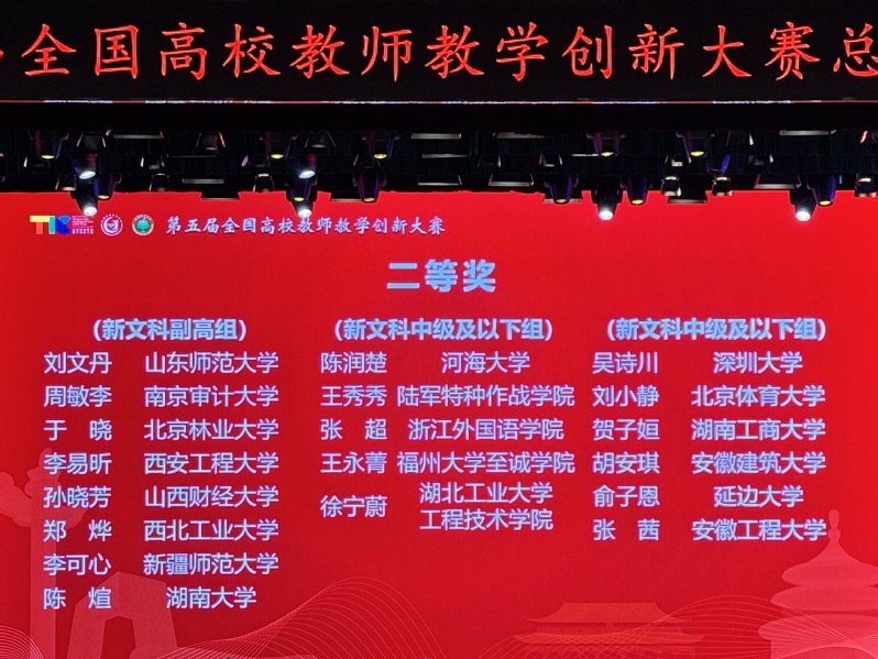 由教育部高等教育司指导、中国高等教育学会主办的第五届全国高校教师教学创新大赛现场评审于8月16日—19日在北京举办。经过激烈角逐,av在线 传媒与设计系王永菁老师荣获新文科中级及以下组二等奖。这是学院成立以来获得的全国教学类竞赛最高奖项,取得了历史性突破。