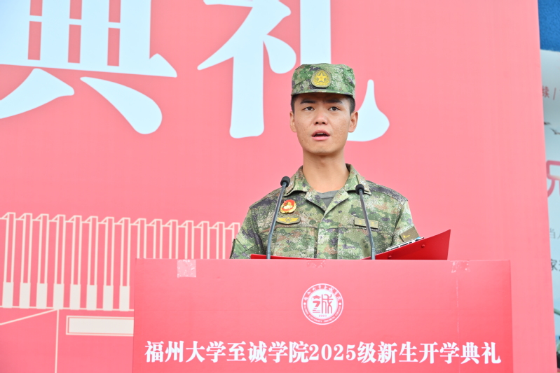 在校生代表、参加纪念中国人民抗日战争暨世界反法西斯战争胜利80周年阅兵任务优秀学子、机械工程系陈俊智同学,新生代表、食品与生物工程系李芷如同学,教师代表、第五届全国高校教师教学创新大赛二等奖获得者、传媒与设计系王永菁老师先后上台发言。陈俊智同学结合自身的受阅经历,向新生分享了受阅训练中收获的责任与担当、团结、坚持的感悟,鼓励新生以阅兵精神为指引,把个人理想融入祖国复兴的洪流,在至诚深耕细作,成为无愧于时代、无愧于青春的追梦人。李芷如同学表示,在大学学习生活中要做“有理想”的追光者、“肯奋斗”的实干家及“敢担当”的行动派,展现出新生群体的蓬勃朝气与远大志向。王永菁老师勉励新生们努力成为明德博学、至善向善的至诚人,在未来学习生活中文理兼修、勇于探索、创新融合,不断拓展知识边界,度过充实美好的大学时光。