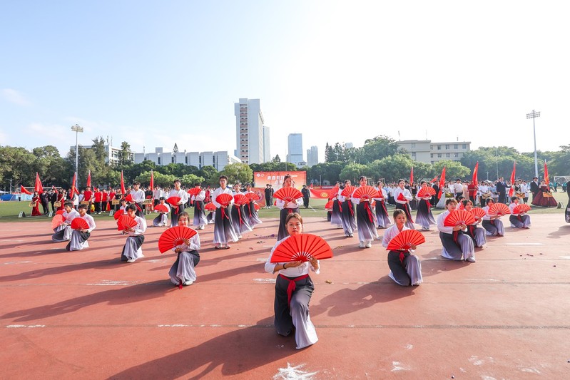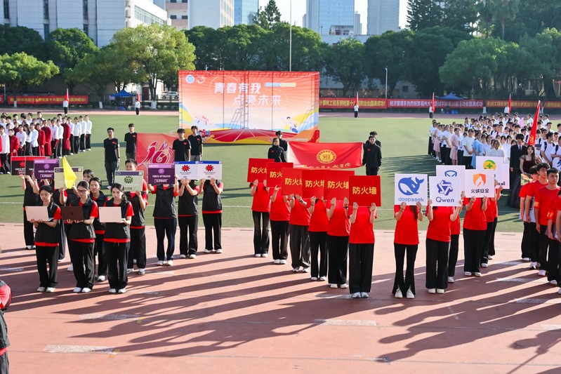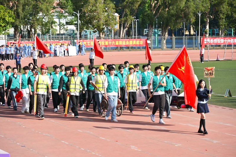 随后,各系代表方阵入场并带来各具特色的表演:外国语系方阵迈着整齐划一的步伐,以自信昂扬的姿态步入赛场,笑容绽放间尽显外语学子心怀世界、融通中外的青春风采;传媒与设计系的同学们用创意巧思诠释力与美的交融,将敏锐的艺术感知与精益求精的匠心融入每一个展示瞬间;数据科学与统计系步伐坚定、身姿挺拔,眼神中满是热忱,以严谨务实的态度和饱满昂扬的热情,展现着对挑战的从容底气;机械工程系踏着精准铿锵的节拍阔步登场,队员们身姿挺拔、精神昂扬,一举一动间彰显出机械系的严谨质感……各系方阵别出心裁,独具匠心,让观众印象深刻。