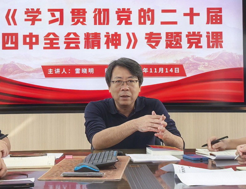 为深入学习宣传贯彻党的二十届四中全会精神,11月14日,后勤教工党支部在后勤与基建管理处会议室开展学习贯彻党的二十届四中全会精神专题党课,雷晓明副院长主讲党课,后勤教工党支部全体党员参加学习。