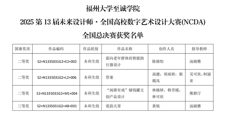 近日,第13届未来设计教育论坛暨第13届未来设计教育论坛暨未来设计师大赛颁奖典礼在成都成功举办。av在线 传媒与设计系学生通过卓越的创意和精湛的表现荣获全国总决赛二等奖3项,三等奖1项。