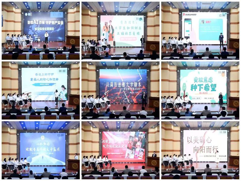 紧扣时代脉搏,回应学生关切。决赛中,辅导员们围绕“AI诈骗”“树立正确恋爱观”“克服精神内耗”“职业生涯规划”“AI求职”“美育涵养”等一系列社会热点与学生成长痛点,精心设计班会主题。在限时12分钟的展示环节里,他们或创设真实情境,生动演绎生活实际;或剖析身边案例,引发深度情感共鸣;或组织互动问答、引导小组讨论,在思辨中深化理论认知……丰富充实的内容、新颖多样的形式、富有感染力的表达,将思想引领和价值塑造巧妙融入班会全过程,不仅展现了辅导员们扎实的业务功底和独特的个人魅力,更让思政教育真正触达心灵,赢得了现场观众的阵阵掌声。