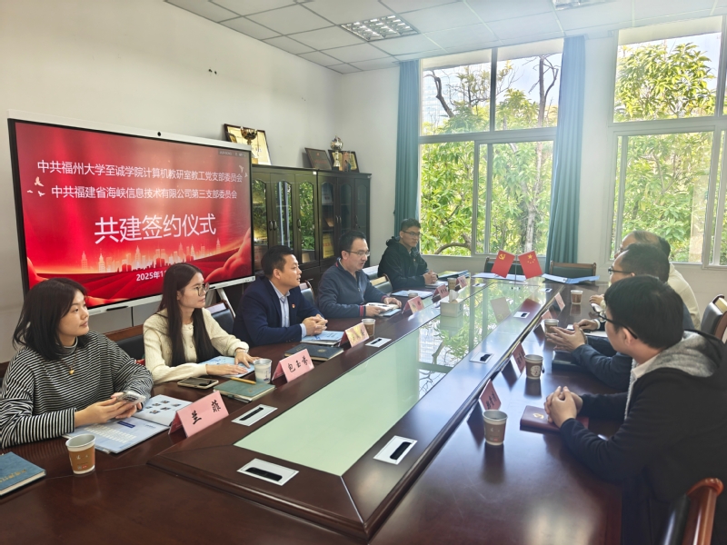 11月26日,av在线 计算机教研室教工党支部与福建海峡信息技术有限公司第三党支部正式签署党建共建协议。双方以“党建共建,协同育人”为核心目标,围绕党建与业务深度融合开展专题交流与合作。