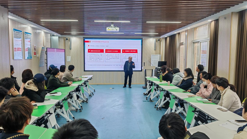 为深入学习贯彻党的二十届四中全会精神,增强师生党员的科技报国使命担当,1月27日,院长助理兼信息工程系系主任徐艺文在地矿楼207为所联系单位的师生党员讲授题为《锚定AI新赛道,勇担强国新使命》的专题党课(思政课)。