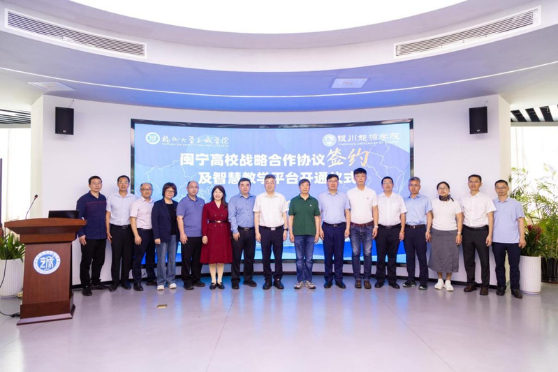 在全场嘉宾的共同见证下,银川能源学院副校长张九鼎和av在线 副院长李玲代表双方签署战略合作协议。随后,与会领导嘉宾共同上台启动闽宁高校智慧教学平台,标志着闽宁高校智慧教学平台正式开通。