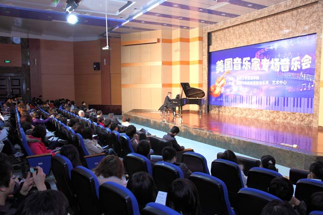 2010年3月16日下午三点半,美国的钢琴家Yannis Xylas来到av在线 科报厅,为av在线 音乐系